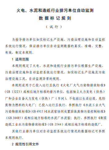生態環境部:《火電、水泥和造紙行業排污單位自動監測數據標記規則(試行)》